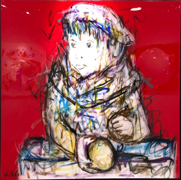 His universe is a palette of all the reminiscences of childhood. Alongside the teddy bear and Charlie Chaplin, the “KiKo Kids” play on his canvas.