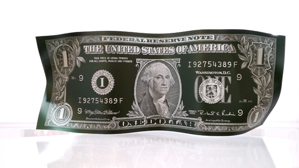 The Dollar is also a powerful symbol of his admiration for the United States with this phrase that adorns: In God We Trust. The same ticket, series 1995, the year when the dollar was at its highest levels, comes in bright colors and sizes. These tickets, contrary to what one may imagine, were not fixed, they writhe and undulate with the works in motion.