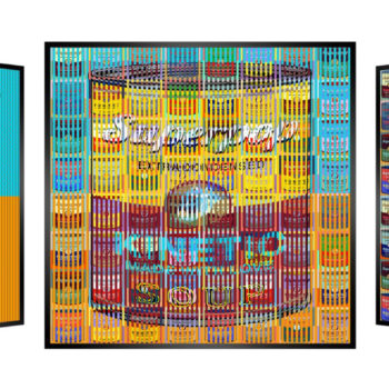 The Beatles? The Union Jack. For the four giants of the fifties, Spiderman, Betty Boop, Super Man and Marilyn?… The same, but in color or black and white, depending on the angle of view … We are in the pop and street art, game design, dynamic and generous. But in the op art, optical art, which plays everything and especially to us, to our delight.