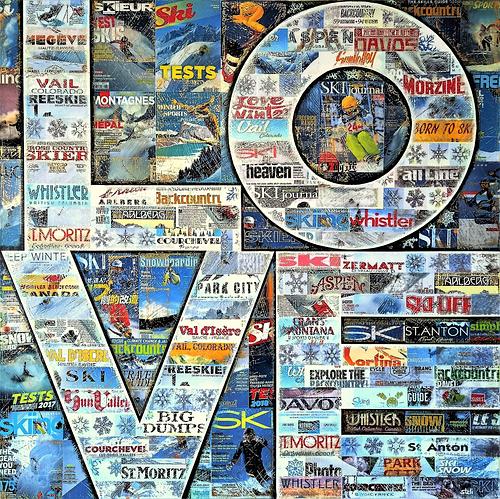 He plays with symmetries and volumes to animate these specific mounted puzzles. His collages are a mixture, a “patchwork” of old and new “found” banknotes, postcards, stickers, flyers and the like, and of course fragments captured by my camera in the urban environment.